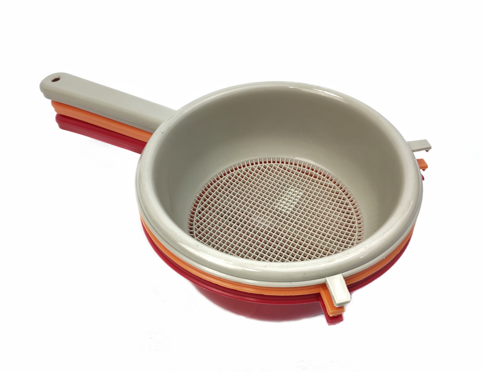 Colabrodo utile, resistente e comodo da usare. La trama a rete è omogenea e funzionale, il manico è lungo e inflessibile.